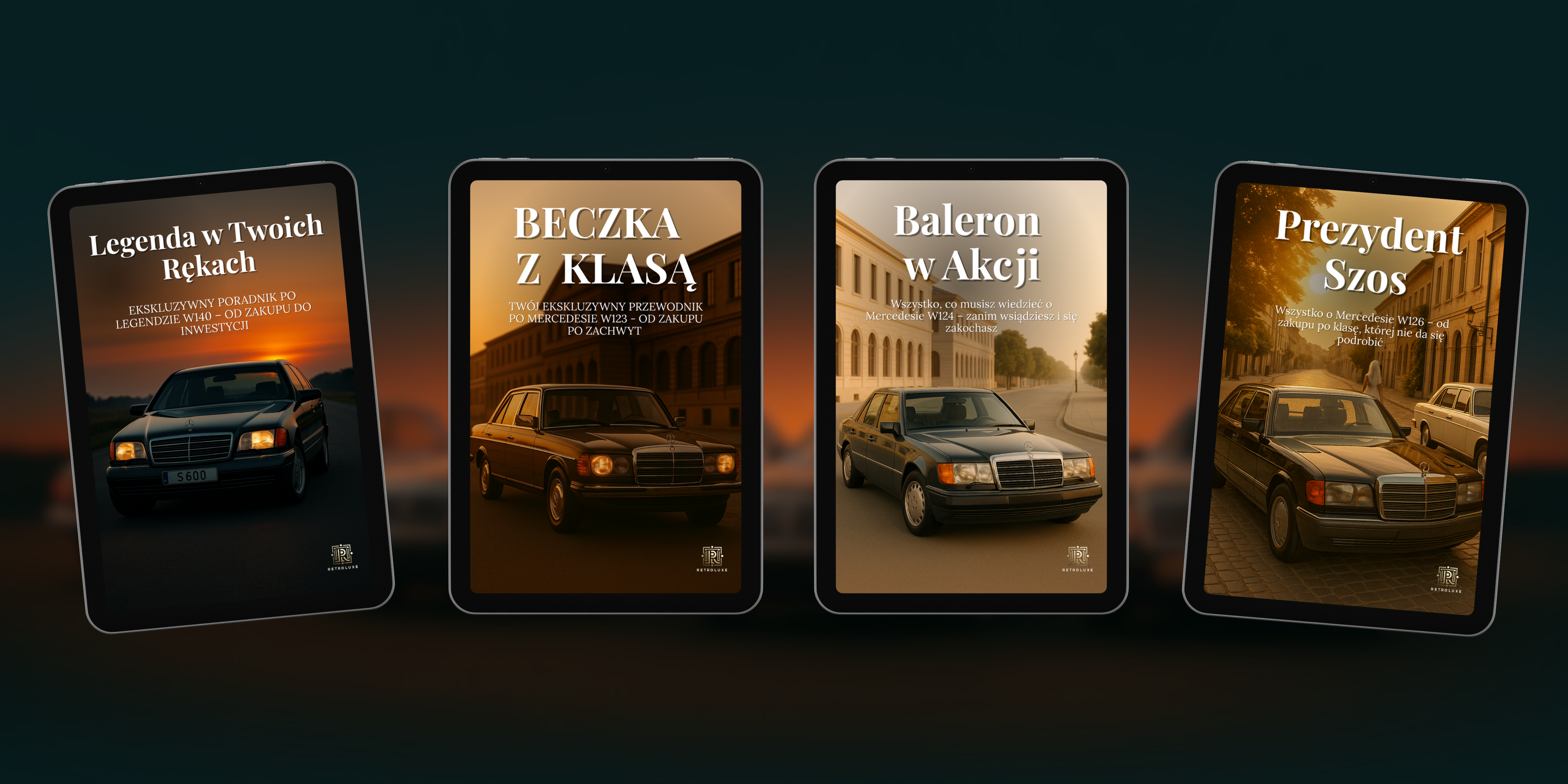 4 eBooki o W123, W124, W126 i W140 – pełne checklist, typowych usterek i porad, które oszczędzą Ci tysiące złotych.